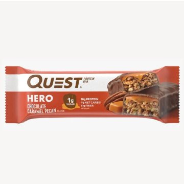Barra de proteína aislada de suero de leche, rellena de caramelo y chocolate y recubierta con chocolate blanco.